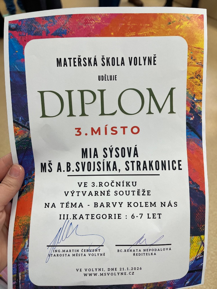 - 3. místo Mia Sýsová " Barevný den" ze třídy Krtečků